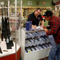 Gun sale at a Missouri gun shop (photo: Jeff Roberson, AP)