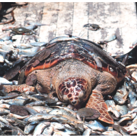 Bycaught loggerhead turtle, 1969 (photo: Bob Williams-NOAA)