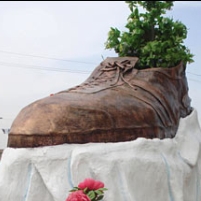 A sculpture of an enormous shoe has been erected in Iraq to honor the journalist who threw his shoes at ex-U.S. President George W. Bush. As he prepared to throw his shoes, Muntadar al-Zeidi, a TV journalist, shouted: “This is from the widows, the orphans, and those who were killed in Iraq.” He also told Bush, who launched the invasion of Iraq in 2003, “This is a farewell kiss, you dog.” Bush managed to dodge the shoes, but Zeidi was arrested and awaits trial. Throwing a shoe is a sign of extreme contempt in the Arab world. His action has brought Zeidi much praise, and inspired rallies across the Middle East and beyond.